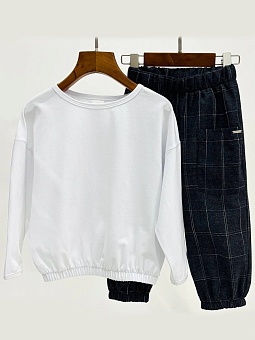 Комплект для девочки в клетку с лосинами